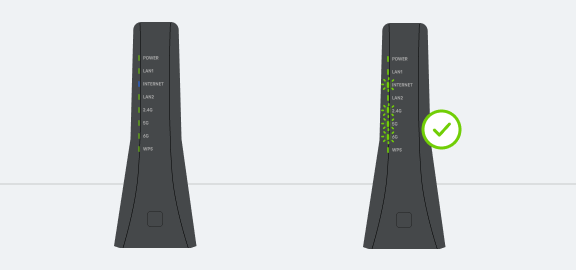 Itt már nem kell újra párosítani az eszközöket, csupán győződj meg arról, hogy az Internet, a 2,4GHz, az 5GHz és a 6GHz LED-ek zölden világítanak.