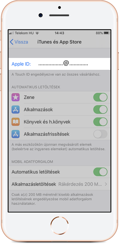 Jelentkezz be a Touch/Face ID-val vagy írd be az Apple azonosítót és jelszavadat;