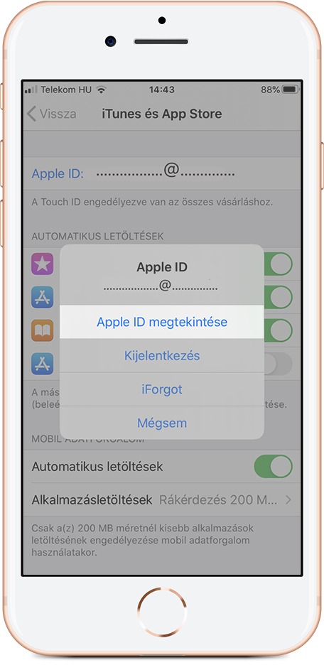 Válaszd ki az Apple ID megtekintését;