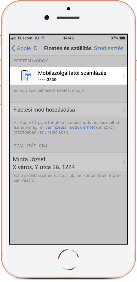 4. Amennyiben már rendelkezel Apple ID -val, és ahhoz bankkártyás fizetést állítottál be korábban, a következő lépésekkel tudod átállítani mobilszolgáltatói számlázásra: