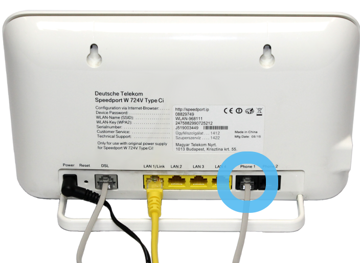 Ha van telefon előfizetésed, ellenőrizd, hogy a kábel megfelelően csatlakozik-e a „PHONE1” portba.