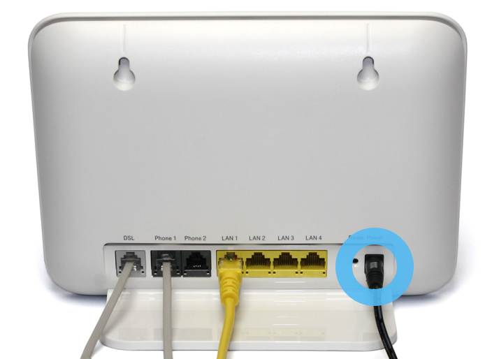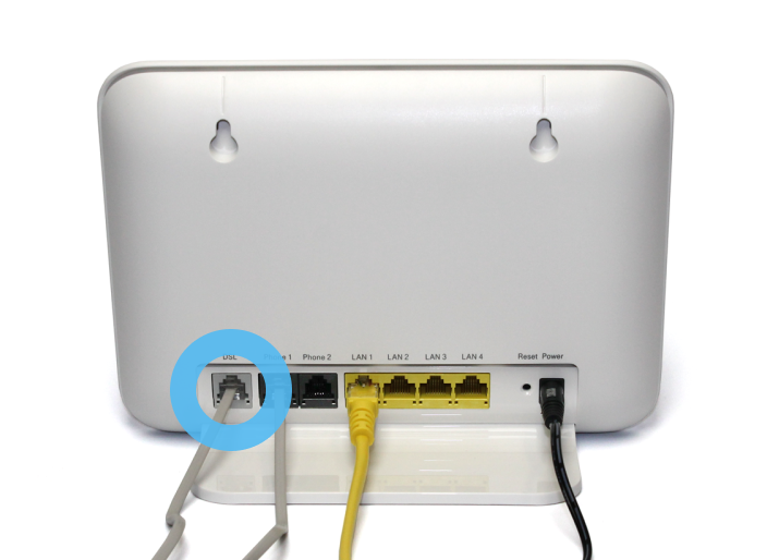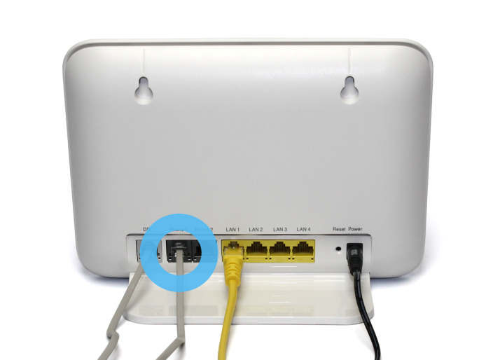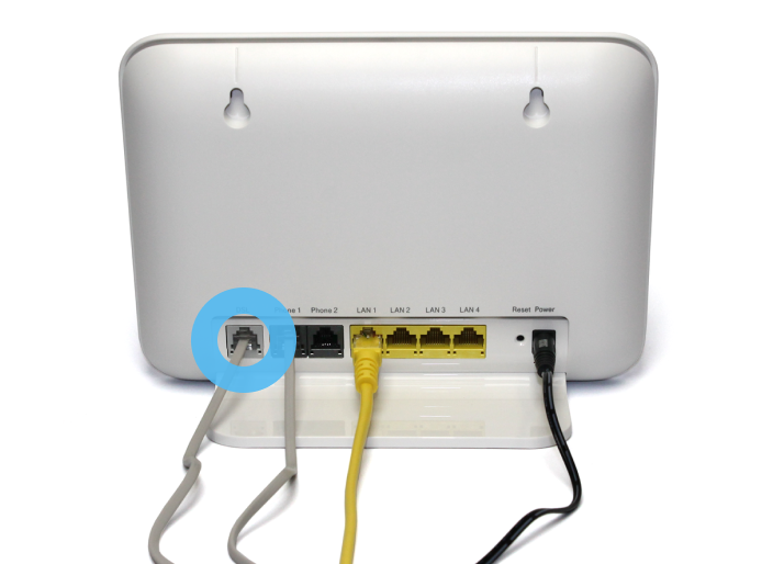 Csatlakoztasd a fali aljzatból, a bejövő RJ11-es rézkábelt (telefonkábel) a készülék hátuljába.
