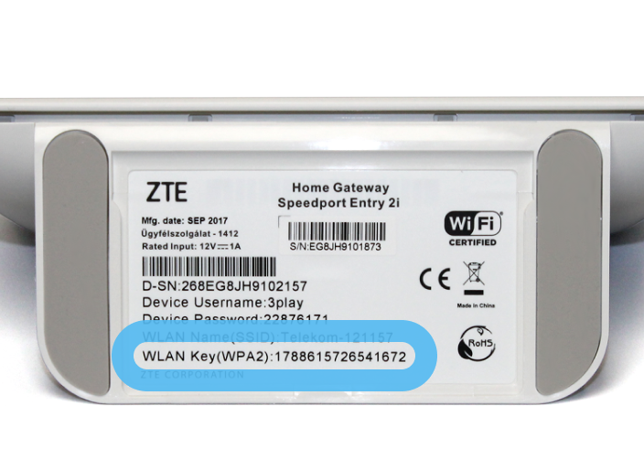 A laptopod vagy mobileszközöd csatlakozásához a digitális elosztó alján lévő címkén találod a „WLAN key” jelszót.