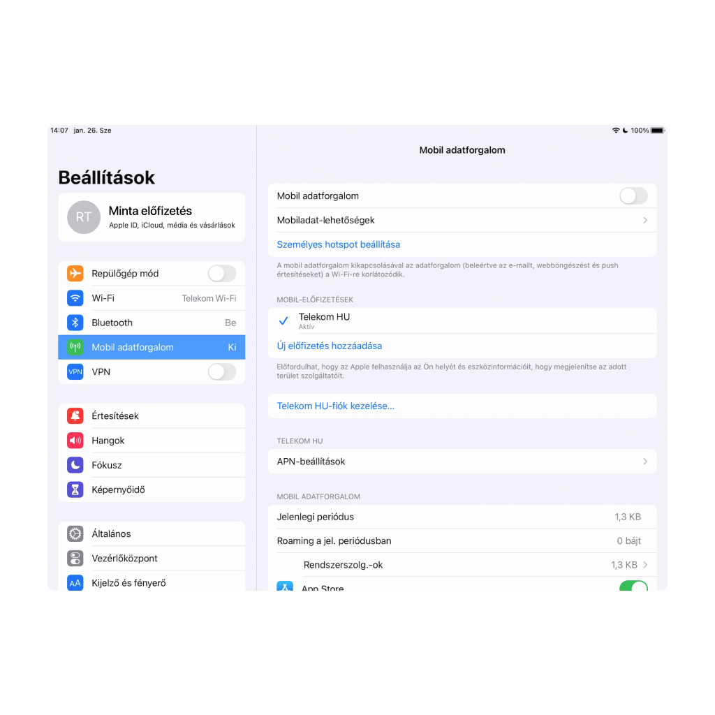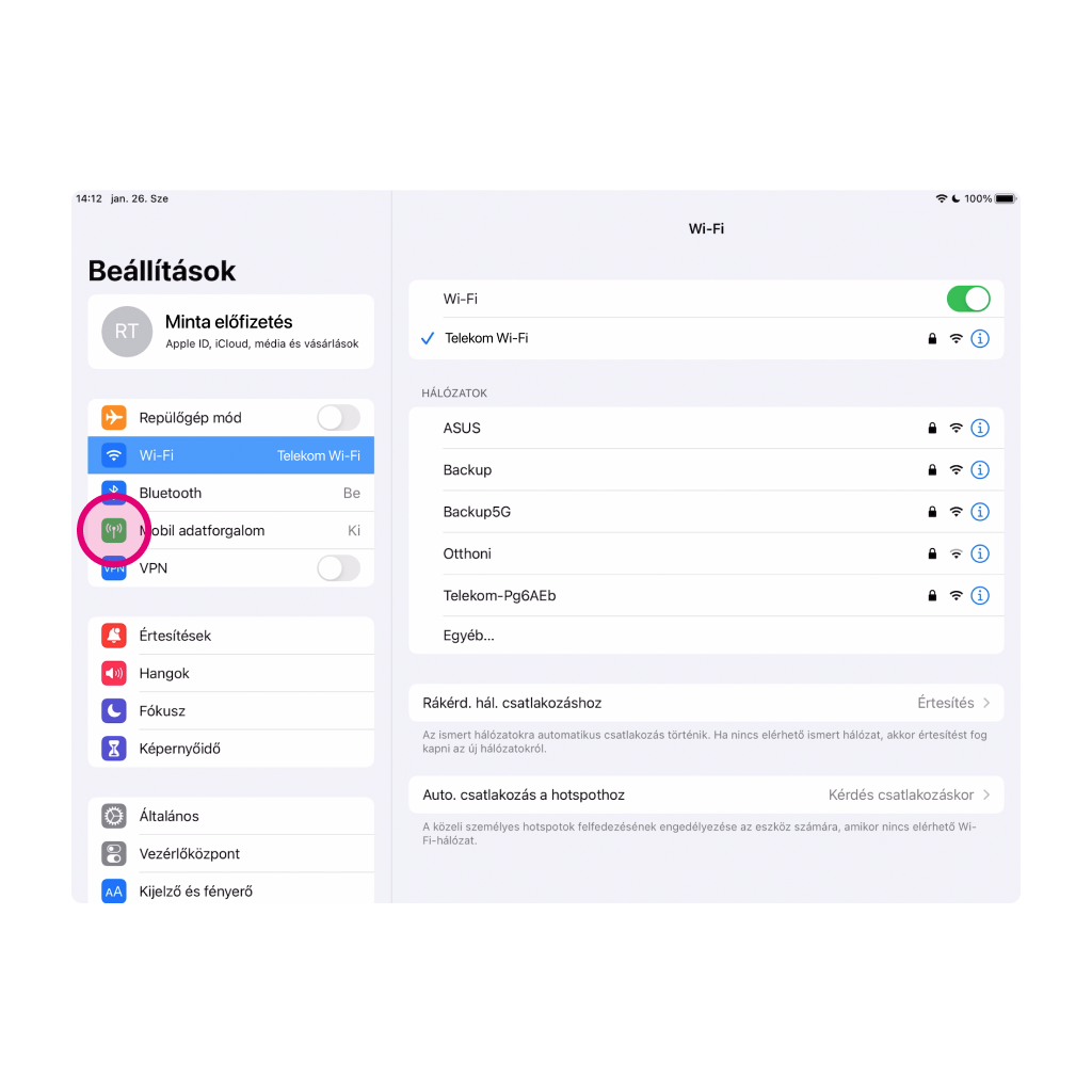 4. A sikeres Wi-Fi-re csatlakozást követően lépj át a “Mobil adatforgalom” menüpontba!