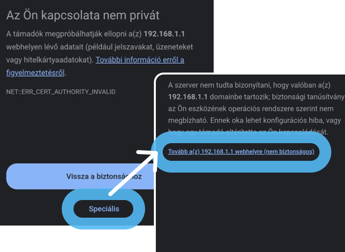 Fontos! A “https://” előtagot is be a böngészőbe és arra a Wi-Fi hálózatra legyél csatlakozva, aminek a beállításain változtatni szeretnél.