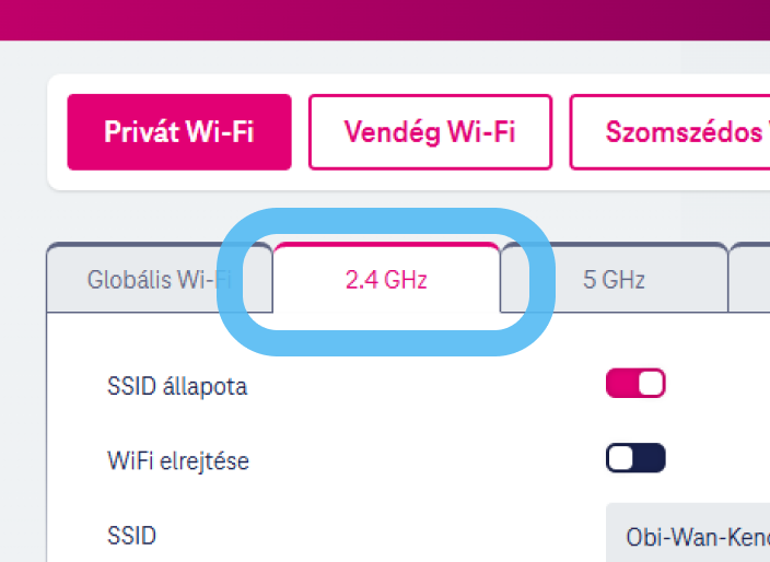 A külön frekvenciák esetében személyre szabhatod az adott frekvencia Wi-Fi beállításait. (pl. név, jelszó, titkosítás stb.)